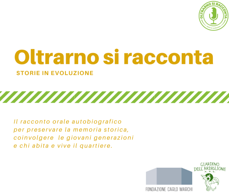 Progetto "Oltrarno si racconta: storie in evoluzione" - Un progetto che vuole preservare la memoria storica del quartiere e coinvolgere le giovani generazioni nella sua cultura e tradizione, tracciando la storia delle persone che hanno contribuito a rendere unico il vissuto dell'Oltrarno. Con il contributo della Fondazione Carlo Marchi.
